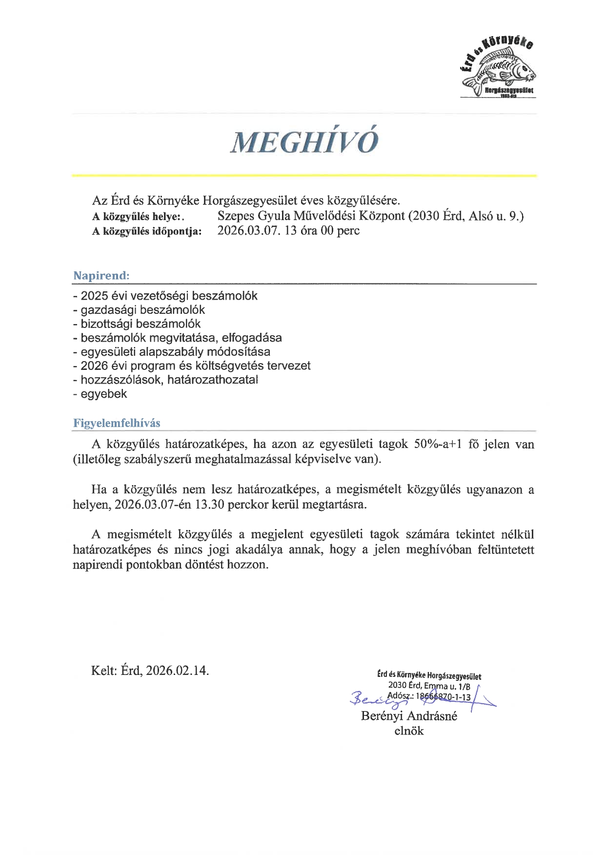 2024. Január 27-én 12 órától megtartjuk idei közgyűlésünket.