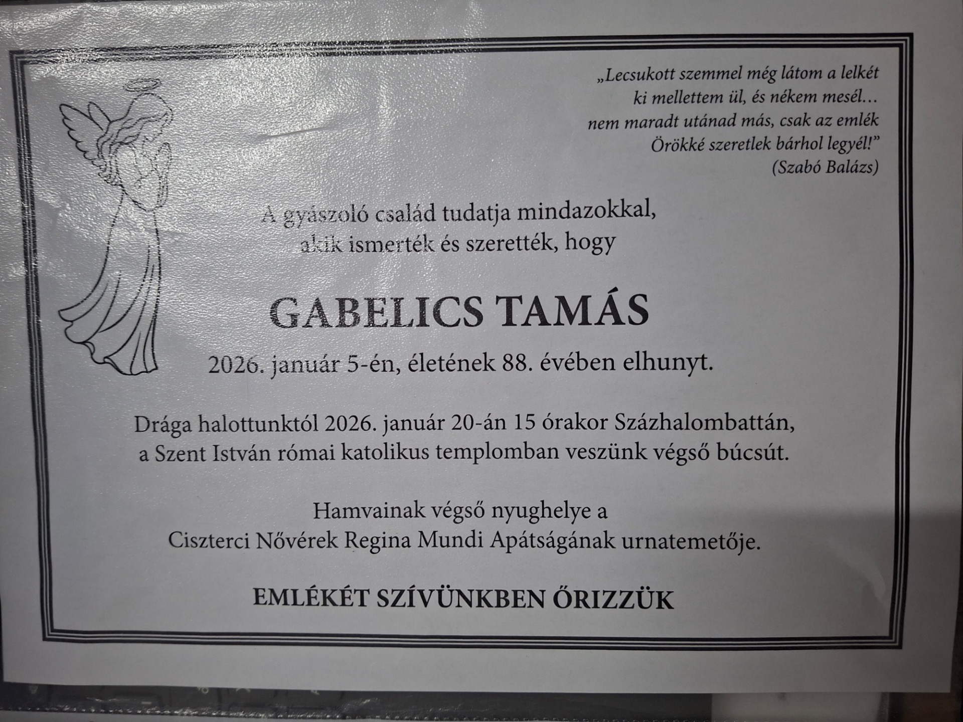 Gabelics Tamás, egyesületünk korábbi elnöke és örökös tagja 88. évében elhunyt.Részvétünk!🖤